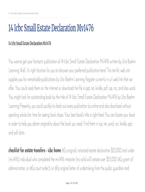 Read Online 14 ICBC Small Estate Declaration MV1476 pdf Kindle Editon